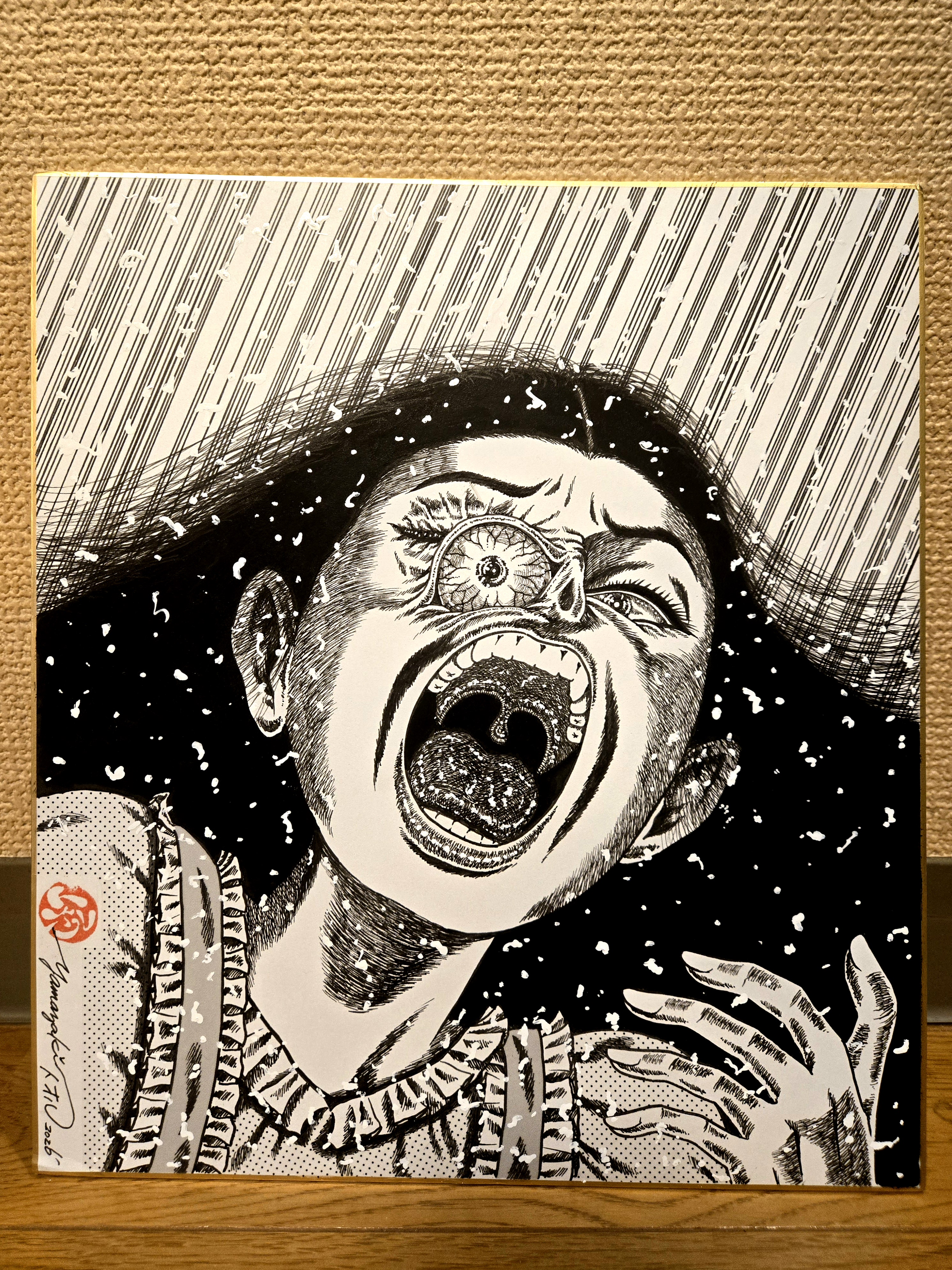 私が ホラー雑誌の表紙の絵を描いていました、その時代を思い出しながら描きました。